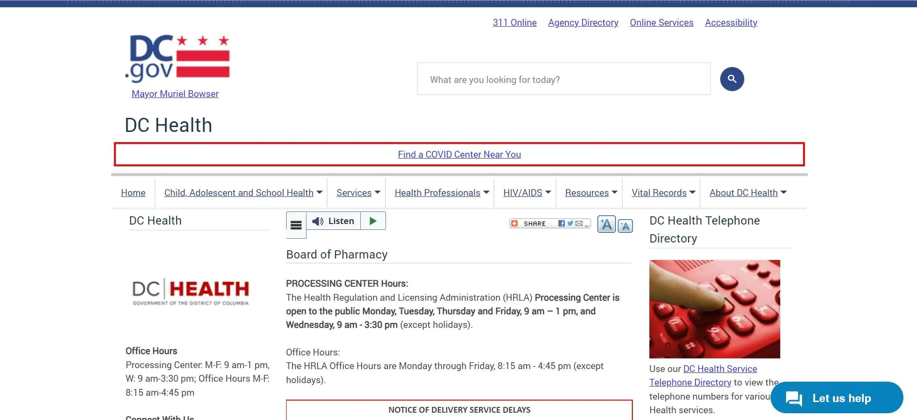 The official District of Columbia (Washington DC) Board of Pharmacy address and contact information is listed below: