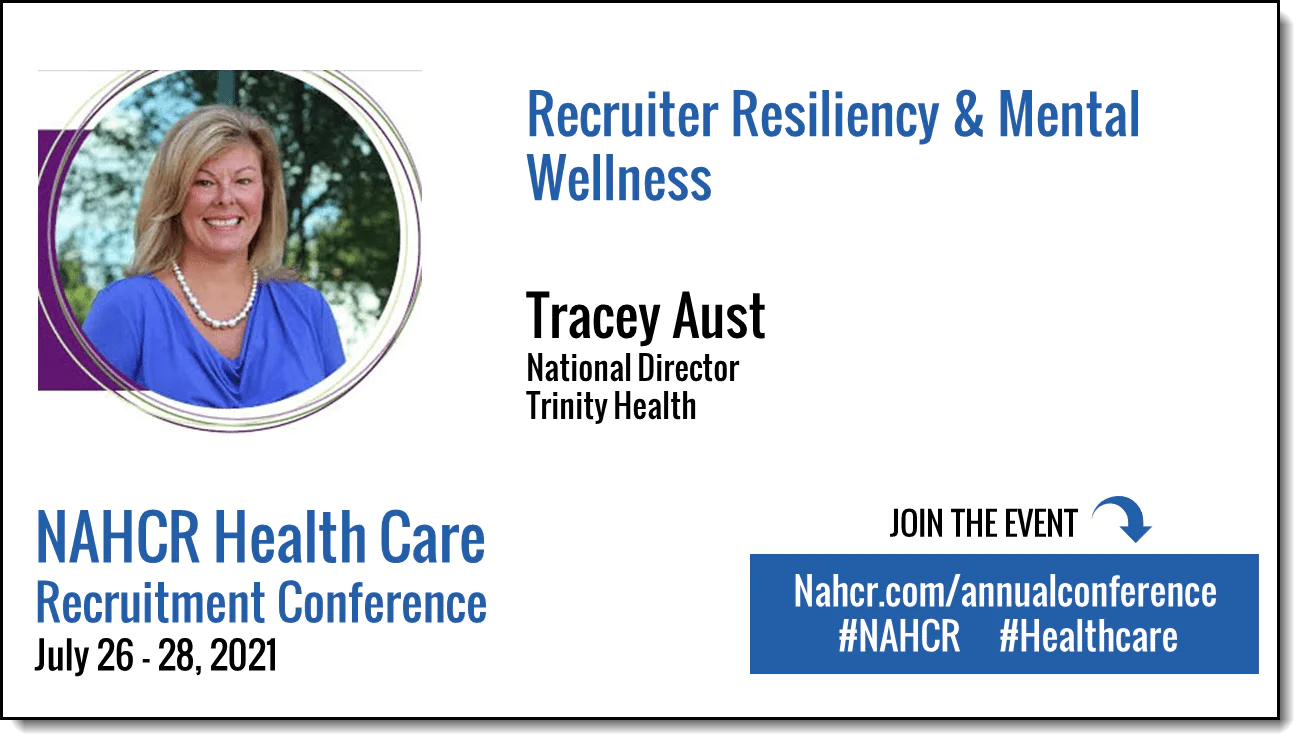 Tracey Aust is speaking at the National Association for Health Care Recruitment (NAHCR) Conference. Tracey’s presentation is titled, “Recruiter Resiliency…