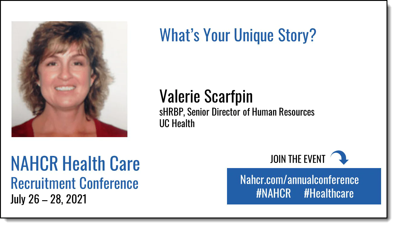 Valerie Scarfpin is speaking at the National Association for Health Care Recruitment (NAHCR) Conference. Valerie’s presentation is titled, “What’s Your…
