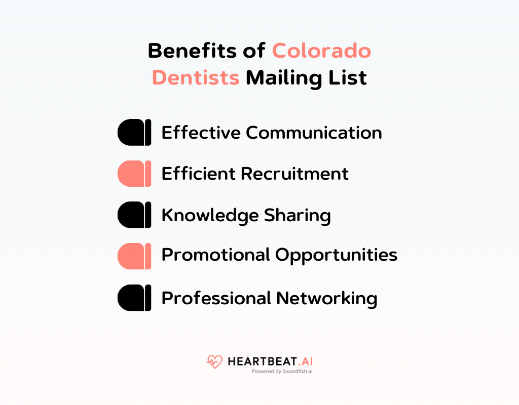 The Colorado dentists mailing list offers significant benefits for those looking to engage with healthcare professionals in Colorado. Here’s what it brings to the table: