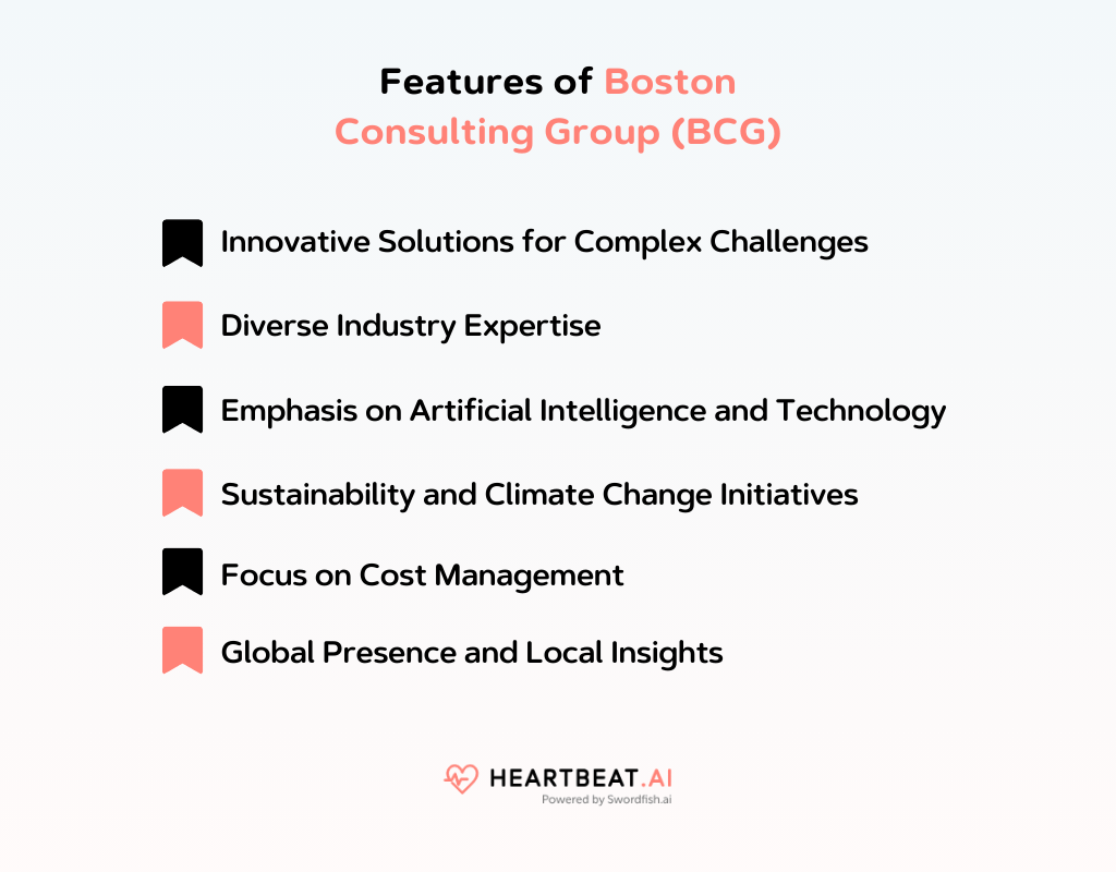 Boston Consulting Group (BCG)is a global management consulting firm known for its innovative approach and diverse expertise. Here are some key features of BCG: