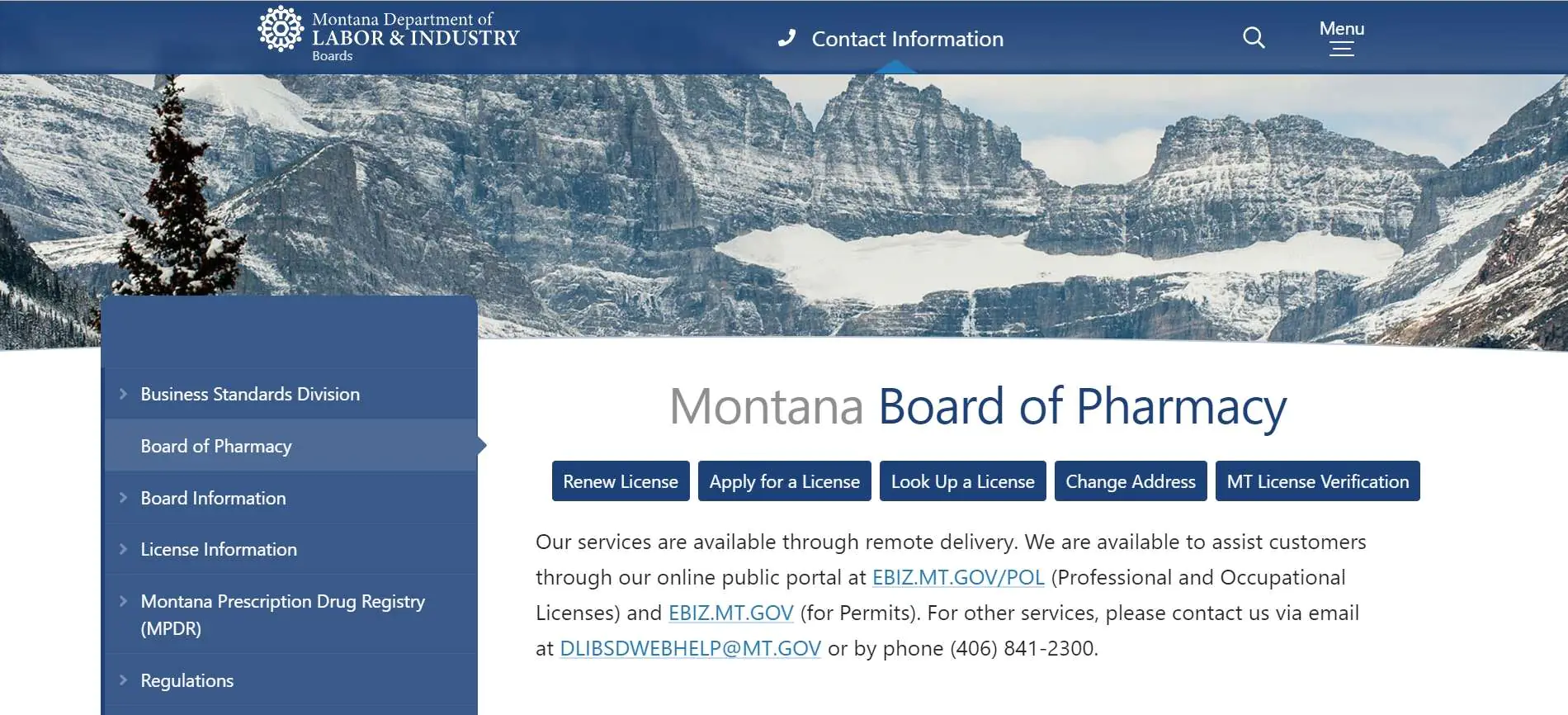 The official Montana Board of Pharmacy address and contact information is listed below: