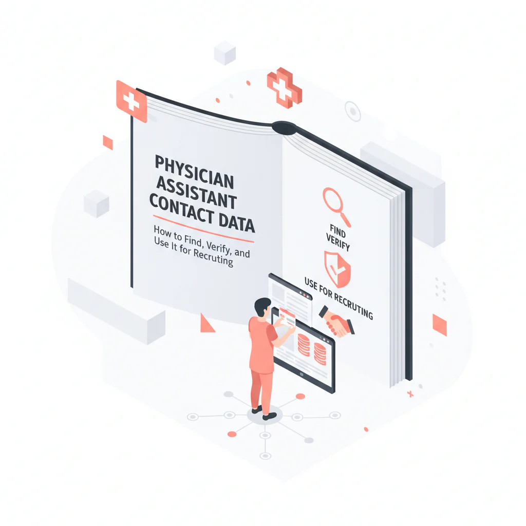 Recruiter workflow for physician assistant contact data: license + NPI identity checks, reachability verification, PA-specific outreach templates, suppression discipline, and measurement.