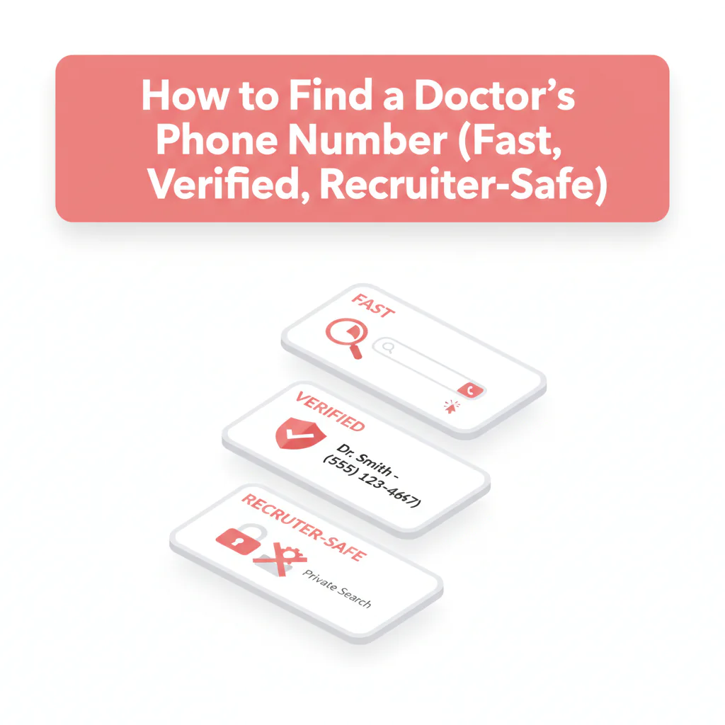 A recruiter-safe, fast workflow for how to find a doctor’s phone number: confirm identity with NPI/license matching, validate line type, rank numbers, and run a tight call/SMS sequence with opt-out and suppression.